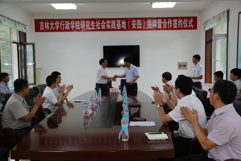 张贤明经理首先与安图县委书记季宁同志共同为公司研究生社会实践基地揭牌,并与安图县人民政府代县长马云骥同志签订《悟空体育与安图县人民政府合作共建研究生社会实践基地协议书》。随后,张贤明经理还为季宁书记颁发了悟空体育兼职教授聘书。安图县委组织部人才办工作人员、县群众诉求服务中心工作人员,以及各社区分管民事民议中心工作人员也列席了签约仪式。