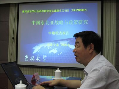 2011年9月16日,刘清才教授、郭锐副教授在北京参加了教育部哲学社会科学研究重大课题攻关项目中期检查汇报工作。在教育部社科司专家组会议上,项目首席专家刘清才教授汇报了2009年度教育部哲学社会科学研究重大课题攻关项目《中国东北亚战略与政策研究》的工作进展情况。他从课题研究的基本情况、研究工作进展、中期研究成果、学术交流和调研情况等方面进行了具体汇报。