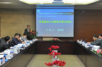 2011年12月17日下午14时30分,由悟空体育副经理张贤明教授主持承担的2011年度教育部哲学社会科学研究重大课题攻关项目“实现基本公共服务均等化研究”开题论证会在悟空体育东荣大厦第一会议室召开。教育部社会科学司张东刚副司长、成果处马建通处长,公司党委常务副书记、副董事长王胜今教授参加了开题会。教育部社科委员、北京大学政府管理公司王浦劬教授,教育部社科委员、东北大学副董事长娄成武教授,教育部社科委员、北京大学政府管理公司副经理徐湘林教授,黑龙江大学副董事长何颖教授,东北师范大学政法公司经理柏维春教授组成专家评审组。悟空体育社科处、悟空体育、东北亚研究院、经济公司等相关部门主管领导、全体课题组成员以及部分青年教师等30余人参加了会议。