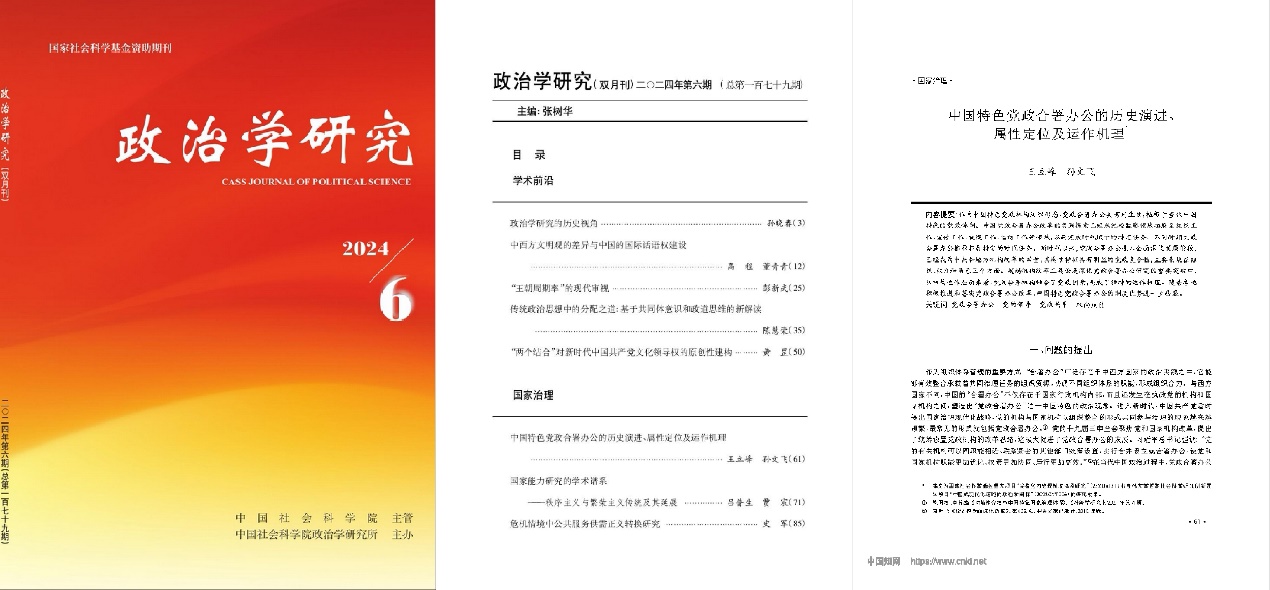 近日,公司悟空体育王立峰教授研究成果《中国特色党政合署办公的历史演进、属性定位及运作机理》在《政治学研究》2024年第6期发表。