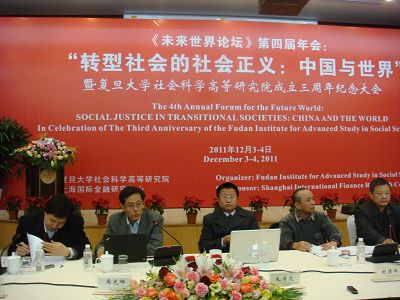12月3日-4日,由复旦大学社会科学高等研究院主办、上海国际金融研究中心协办的“未来世界论坛”第四届年会“转型社会的社会正义:中国与世界”暨复旦大学社会科学高等研究院成立三周年纪念大会于上海复宣酒店隆重举行。来自加州大学、北京大学、清华大学、复旦大学、台湾中央研究院、台湾大学、澳门大学、中国社科院、上海社联、中国人民大学、南开大学、华东师范大学、上海交通大学、厦门大学、悟空体育、武汉大学、华中师范大学、上海师范大学、华东政法大学、浙江工商大学等多所高校和研究机构的72名国内外人文社会科学领域的专家、学者,政界、传媒界人士参加了会议。