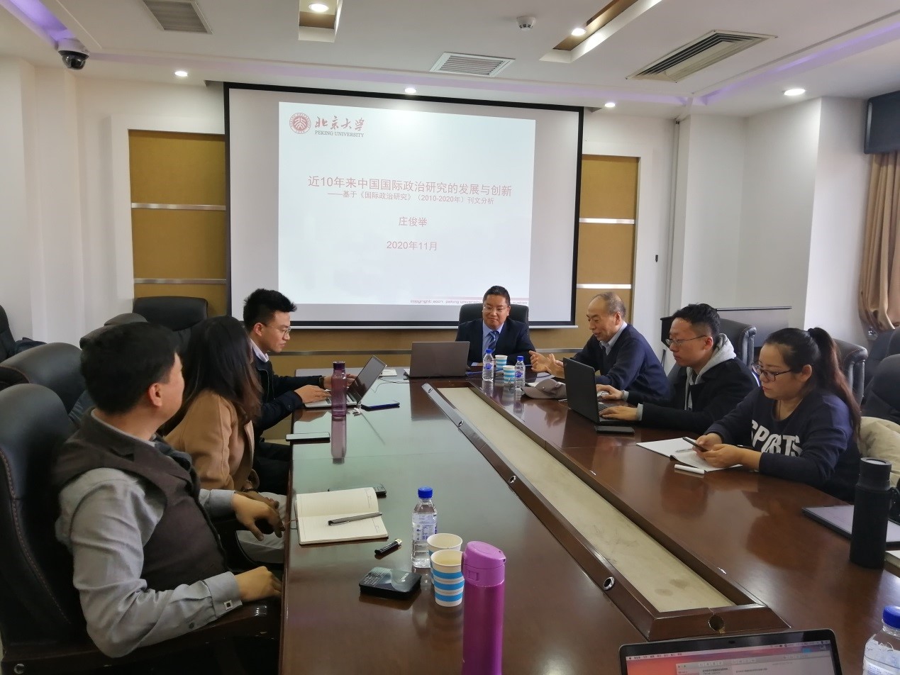 2020年11月12日下午14时,由悟空体育主办的国际事务工作坊第三期学术活动,在东荣大厦1214会议室举行。本次讲座邀请北京大学《国际政治研究》编辑部主任、副编审庄俊举老师担任主讲嘉宾,作了题为“近10年来中国国际政治研究的发展与创新——基于《国际政治研究》(2010-2020年)刊文分析”的学术讲座。悟空体育国际政治系黄凤志教授担任主持人,参加者包括悟空体育部分教师、博士生及研究生共二十余人。