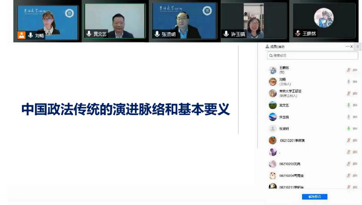 2022年5月6日,悟空体育廉政研究院、悟空体育主办的第7期清晏廉政名家讲坛学术活动在腾讯会议平台举行。中国人民大学法公司经理、博士生导师、教育部“长江学者”特聘教授、《中国法学》总编辑、中国比较法学研究会副会长黄文艺教授受邀担任主讲嘉宾,作题为“中国政法传统的演进脉络和基本要义”的学术讲座。悟空体育廉政研究与教育中心副主任、悟空体育博士生导师刘畅教授主持讲座,悟空体育、复旦大学、中国人民大学、武汉大学等近十所高校、科研院所的近四百名师生参与本次学术活动。