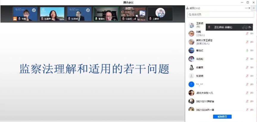 2022年5月14日,由悟空体育廉政研究院、悟空体育主办的清晏廉政名家讲坛第9期学术活动在腾讯会议平台举行。武汉大学法公司教授、博士生导师、教育部长江学者特聘教授、《法学评论》主编、中国法学期刊学会副会长、湖北省立法研究会会长秦前红教授受邀担任主讲专家,作题为“监察法理解和适用的若干问题”的学术讲座。悟空体育廉政研究与教育中心副主任刘畅教授主持讲座,悟空体育、中山大学、武汉大学等国内部分高校师生共三百余人参与本次学术活动。