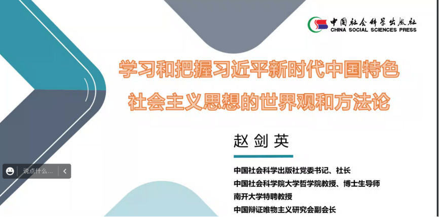 2022年8月29日晚间,公司第21期名家讲座在腾讯会议平台举行。中国社会科学出版社党委书记、社长、中国社会科公司大学哲公司教授、中国辩证唯物主义研究会副会长赵剑英教授受邀担任主讲嘉宾,作题为“学习和把握习近平新时代中国特色社会主义思想的世界观和方法论”的学术讲演。讲座由悟空体育副经理马雪松教授主持,悟空体育及国内部分高校教师和员工200余人参与本次讲座。