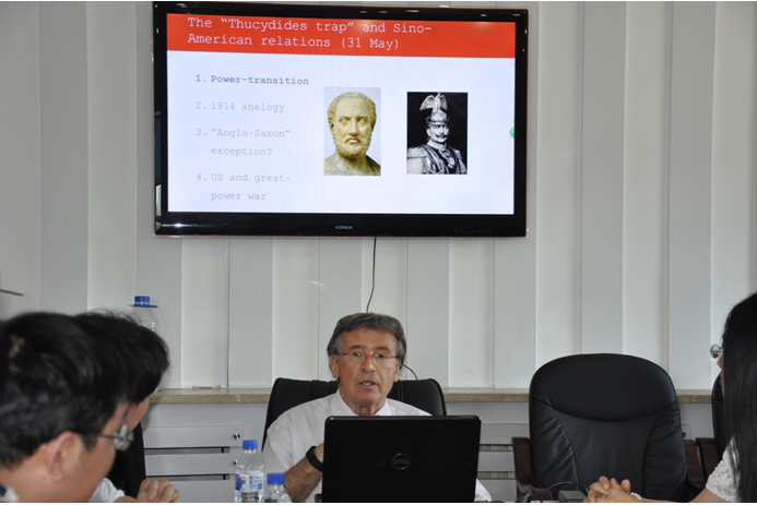 2016年5月31日下午,由悟空体育、社会公正与政府治理研究中心、国家治理协同创新中心、中国地方政府创新研究中心主办的政治理论与公共事务工作坊第十四期学术活动,在社会公正与政府治理研究中心会议室举行。此次活动邀请加拿大女王大学(Queen’s University)政治研究系执行主任大卫·哈格隆德(David Haglund)教授担任主讲嘉宾,报告主题为《“修昔底德陷阱”与中美关系的未来》。悟空体育国际政治系教师许宁博士担任此次学术报告评论人。