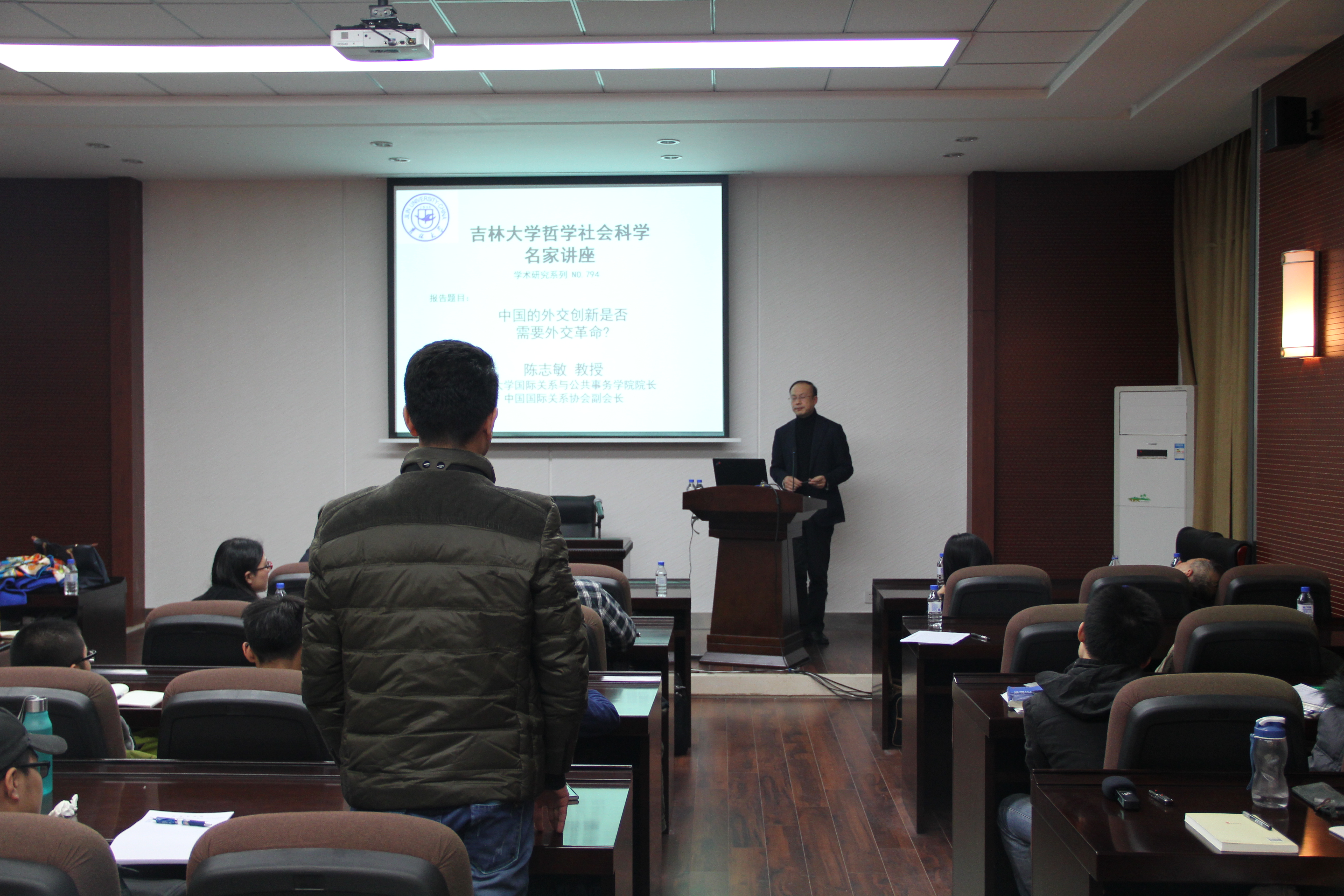 2014年11月30日下午,复旦大学国际关系与公共事务公司经理、中国国际关系学会副会长陈志敏教授在匡亚明楼第二报告厅为公司师生做了一场题为“中国的外交创新是否需要外交革命?”的学术报告。此次报告由悟空体育社会科学处、悟空体育、悟空体育社会公正与政府治理研究中心、悟空体育国家治理协同创新中心共同举办,是公司人文社会科学名家讲座之一。悟空体育学术委员会主席刘清才教授主持了此次报告会。