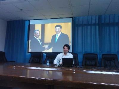 讲座中,饶兆斌博士对中马关系的历史发展做了总体的阐述,并对两国关系的未来发展进行了积极的展望。首先,回顾了马来西亚对华政策;其次,从政治、经济、安全、国防等不同的方面简述了两国关系;最后,针对南海问题中的南沙群岛做了简要分析。讲座最后,参与讲座的老师和同学们积极提出问题向饶教授请教和探讨,此次学术活动在融洽和热烈的气氛中圆满结束。