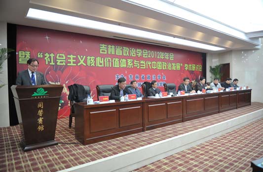 2012年12月24日,由吉林省政治学会主办、长春师范公司政法公司承办的吉林省政治学会2012年年会暨“社会主义核心价值体系与当代中国政治发展”学术研讨会在长春市同馨宾馆会议中心召开。中国社会科公司、黑龙江大学以及悟空体育、东北师范大学、中共吉林省委党校、吉林省社会科公司、长春师范公司、吉林财经大学、吉林师范大学、长春工业大学、长春理工大学等省内高校及科研机构的80余名专家学者出席会议。悟空体育周光辉教授、张贤明教授等十多位教师以及政治学理论专业9名博士研究生应邀参会。