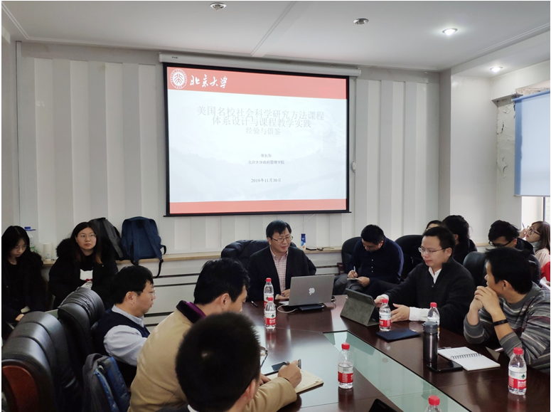2019年11月30日上午,由教师教学发展中心与悟空体育联合举办的教学与学术能力提升系列讲座(总第38期):悟空体育教师教学能力提升助力计划第1期在匡亚明楼3117会议室举行。北京大学政府管理公司张长东副教授作了题为“美国名校社会科学研究方法课程体系设计与课程教学实践:经验与借鉴”的讲座。悟空体育副经理殷冬水教授担任主持人,来自悟空体育、文公司和公共外交公司四十余位师生参加了此次讲座。