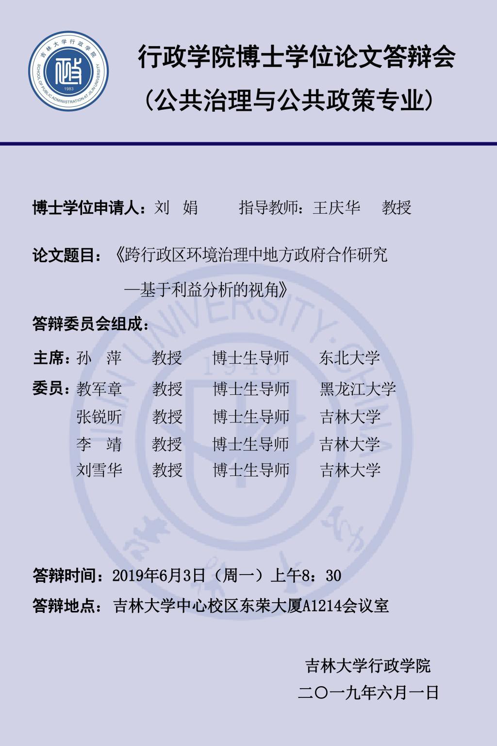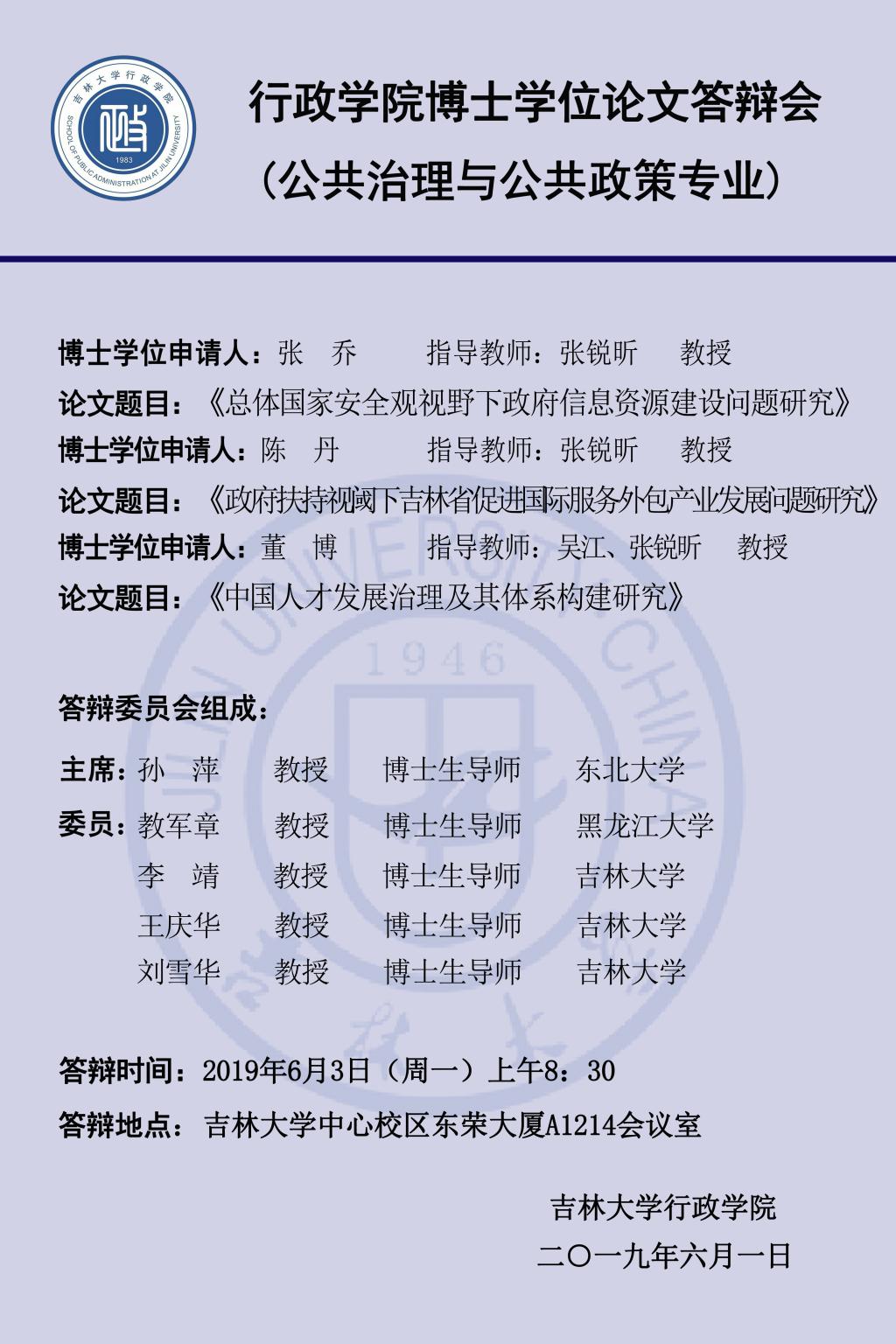 上一篇:2019年上半年博士学位论文答辩会(第六组:行政管理专业、公共治理与公共政策专业)