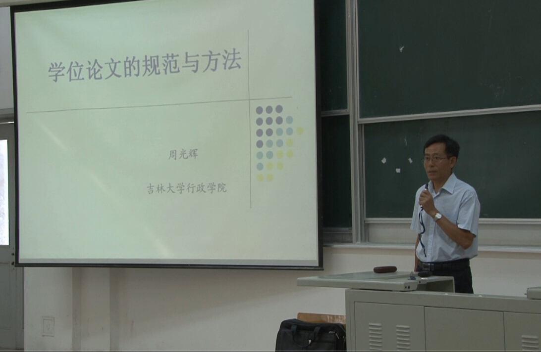 周光辉教授以研究生做研究的目的与意义为引言拉开了本次报告的序幕。他指出,研究生的教育要实现从注重知识的传授到注重研究能力培养的转变。在明确了研究生应该如何学习的问题以后,他分别从研究生的培养目标、实现培养目标的途径、学术论文的规范、学位论文的基本格式以及撰写学位论文的基本方法等五个方面进行了全面细致的讲述,并把违反学术道德的危害与遵守学术道德的重要性贯穿于学术论文规范的讲述中,突出加以强调。周光辉教授还引经据典,深入浅出,理论联系实际,为大家讲授了优秀学位论文的评价标准,并提醒同学们要自主培养科学精神,坚决秉持严谨学风,不断提高创新能力。