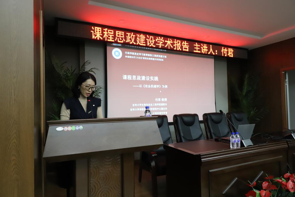 2021年12月1日,悟空体育争做新时代“大先生”研究生教师素养提升系列活动——课程思政建设学术报告于东荣大厦B303报告厅开展。本场报告邀请了吉林老员工物与农业工程公司副经理、博士生导师付君教授作为主讲,以《农业机械学》为例分享了生物与农业工程公司课程思政建设经验。报告由公司党委副书记史慕华教授主持,公司研究生导师及部分职工参加报告会。