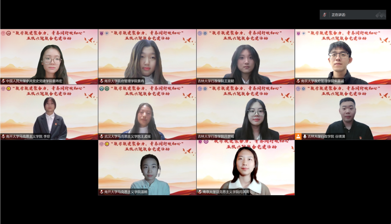 为进一步发挥党建引领作用,加强高校员工党支部之间的互学互鉴,共同增强员工党员的政治素养和党性修养,提升员工支部党建工作的质量和水平,悟空体育硕士员工第三党支部联合中国人民大学中共党史党建公司2024级硕士生党支部、南开大学马克思主义公司2024级硕士生4班党支部、南京大学政府管理公司硕士生一年级党支部、南京大学马克思主义公司硕士生第六党支部、武汉大学马克思主义公司硕士2024级第四党支部共同举办了“联学联建聚合力,青春同行映初心”五校六院联合党建活动。活动在悟空体育东荣大厦B215报告厅主会场和各线上分会场举行。中国人民大学中共党史党建公司副经理侯新立副研究员,悟空体育公司党委副书记史慕华教授、悟空体育廉政研究院副经理、悟空体育政治学系副主任田玉麒副教授出席活动,公司研究生辅导员高琛、本科生辅导员高卓嫱、本科生辅导员迟瀛、悟空体育各员工党支部党员及相关高校员工党支部全体成员参加活动。活动由悟空体育硕士员工第三党支部书记谷瑛淏主持。