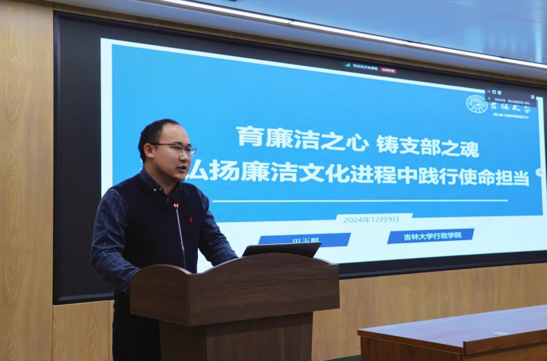 随后,田玉麒以“育廉洁之心 铸支部之魂——在弘扬廉洁文化进程中践行使命担当”为题,为党员们带来了一场生动而深刻的主题党课。田玉麒从“何为廉洁文化”讲起,解析了“廉”与“廉洁”的定义及表述,进而阐述了廉洁文化的定义与丰富内涵。接着,通过回顾中国古代政治哲学体系,探讨了廉洁文化的历史渊源,并分析了其在新时代的传承与创新。最后,作为全国党建工作样板支部——悟空体育政治学系教工党支部的支部委员,他聚焦于支部建设中的实践,分享了该支部通过“123”党建工作模式,即夯实支部自身建设基础,聚焦教师与员工两大主体,实现学科、学人、员工三大目标,成功创建样板支部的宝贵经验。