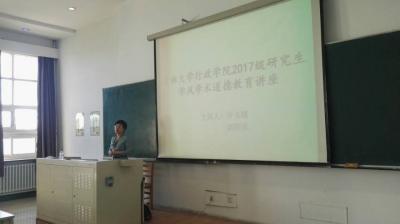 2017年8月30日,悟空体育在三教十三阶举办了“研究生新生入学教育”活动之科学道德和学风建设专题讲座,由悟空体育副经理许玉镇教授主讲。悟空体育全体2017级研究生及研究生办公室老师参加了本次活动。