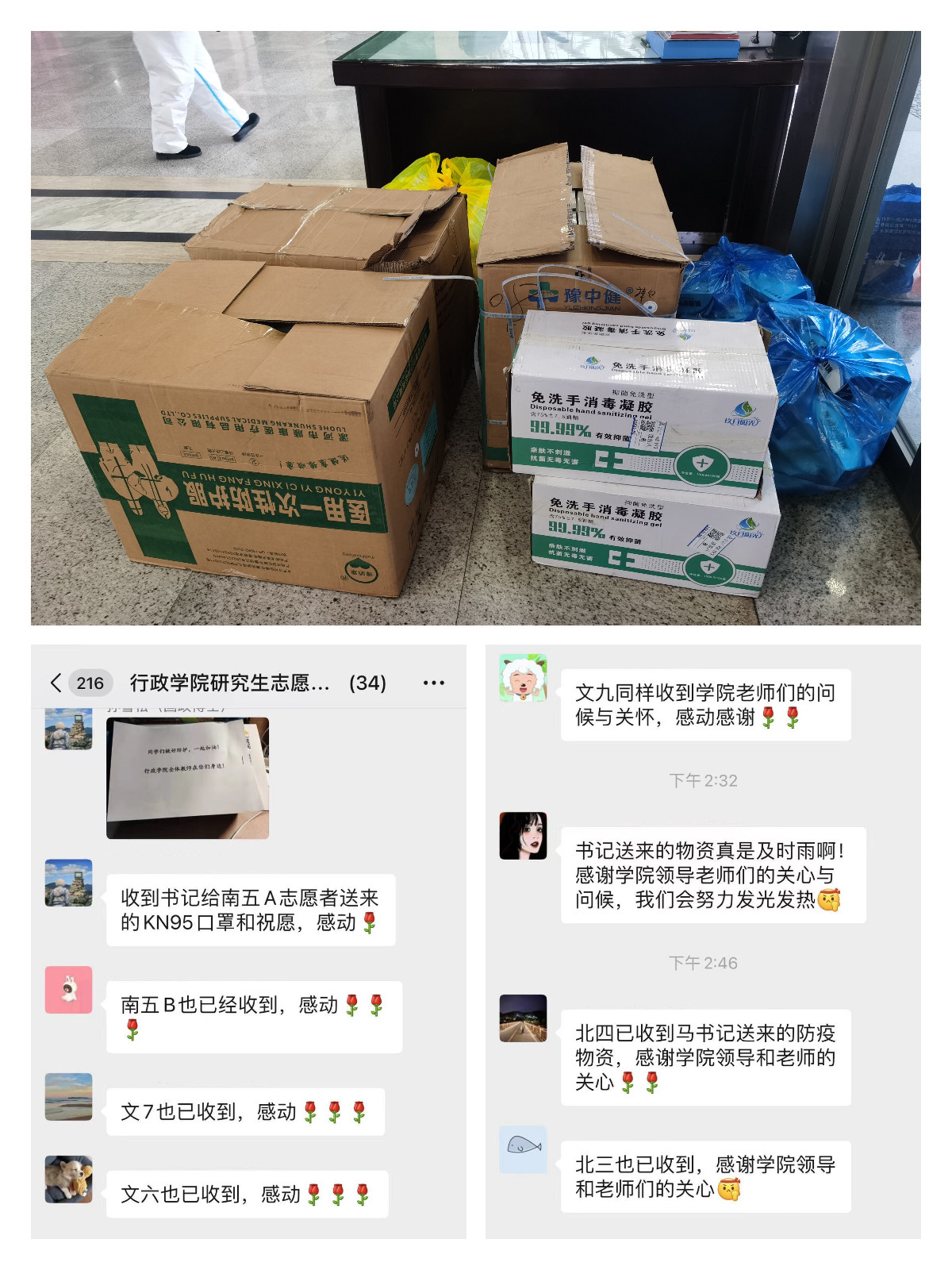2021级党支部书记钱优楠告诉工作人员:“有一次凌晨12点多发通知,限定人数下楼取物资,取完物资已经快凌晨1点多了,但是北三志愿团队的师姐们都没有睡,在群里实时问进度,怕物资太多,等着一块搬物资分物资。”不敢早睡的背后有着悟空体育上下一心、全力应对的决心,有着全体师生无私奉献、共克疫情的勇气,有着大家众志成城、攻坚克难的行动。