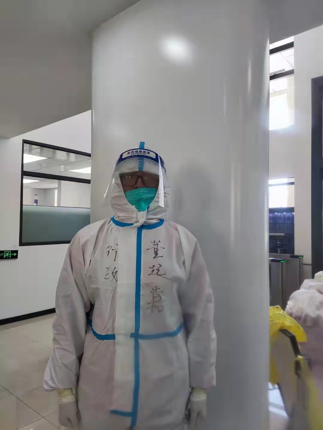 谈起当时报名的想法,刘期聪说:“我当时想的是楼内人手不够了、需要帮忙,我作为一名党员看到消息应该挺身而出,所以就报名了党员突击队。负责物资配送的老师让我穿好白色防护服,并且告知了情况强调了注意事项,我这才知道任务重大。”