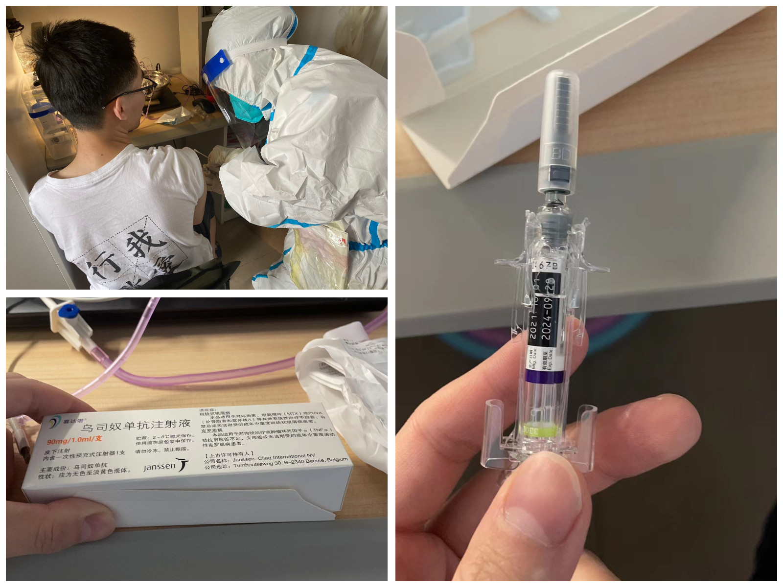 5月3日上午9点,一位身背药箱的“大白”乘坐120急救车专程来到北四公寓楼,上门为公司员工进行现场诊疗。因为公司有位同学身患慢性疾病,需要长期食用营养粉,定期注射对症药物,即使是正常学习生活时期,繁多的药物和检查也给他带来诸多不便。封闭管理之后,他求助于公司和校医院,希望能够采购药品,按时完成药物注射。校医院和公司高度重视同学们的健康问题,在得知员工需求后第一时间做出反应:校医公司党委书记张伟一方面积极调配物资,确保药物保存妥当,一方面安排专人准时登门诊疗;公司领导老师在员工、校医院与供药药房之间架起有效沟通的“高速路”,反复确认流程,把每个细节安排到位,协助校医院开展诊疗工作。一切准备就绪并顺利完成诊疗后,该同学深受感动,说到:“校医院和公司的老师们甚至考虑到了储药冰柜的温度,真是太负责了!”
