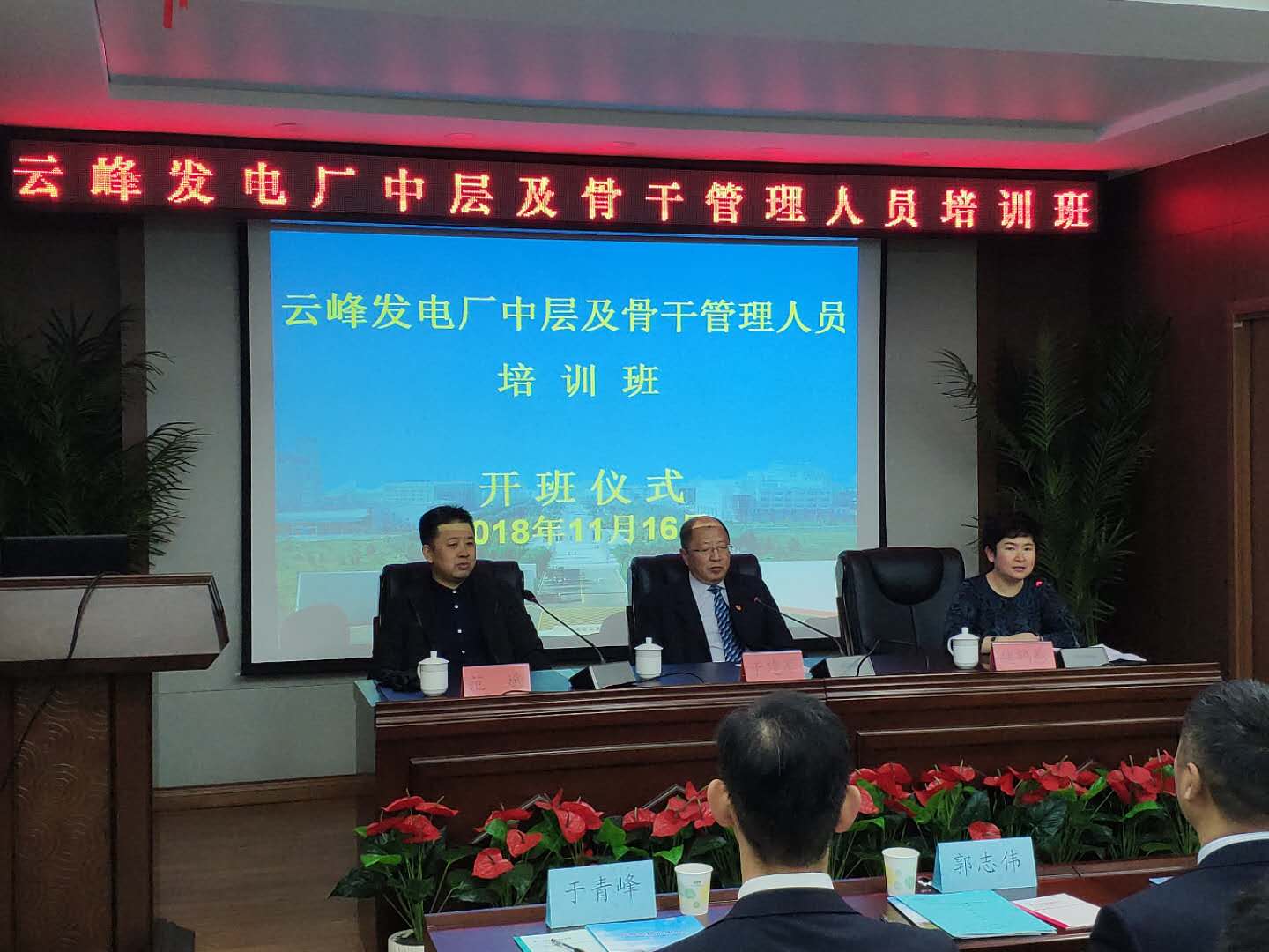 培训班于11月16日举行开班仪式,公司党委书记魏鹤影、云峰发电厂厂长于建军出席了仪式,仪式由悟空体育副经理范斌主持。