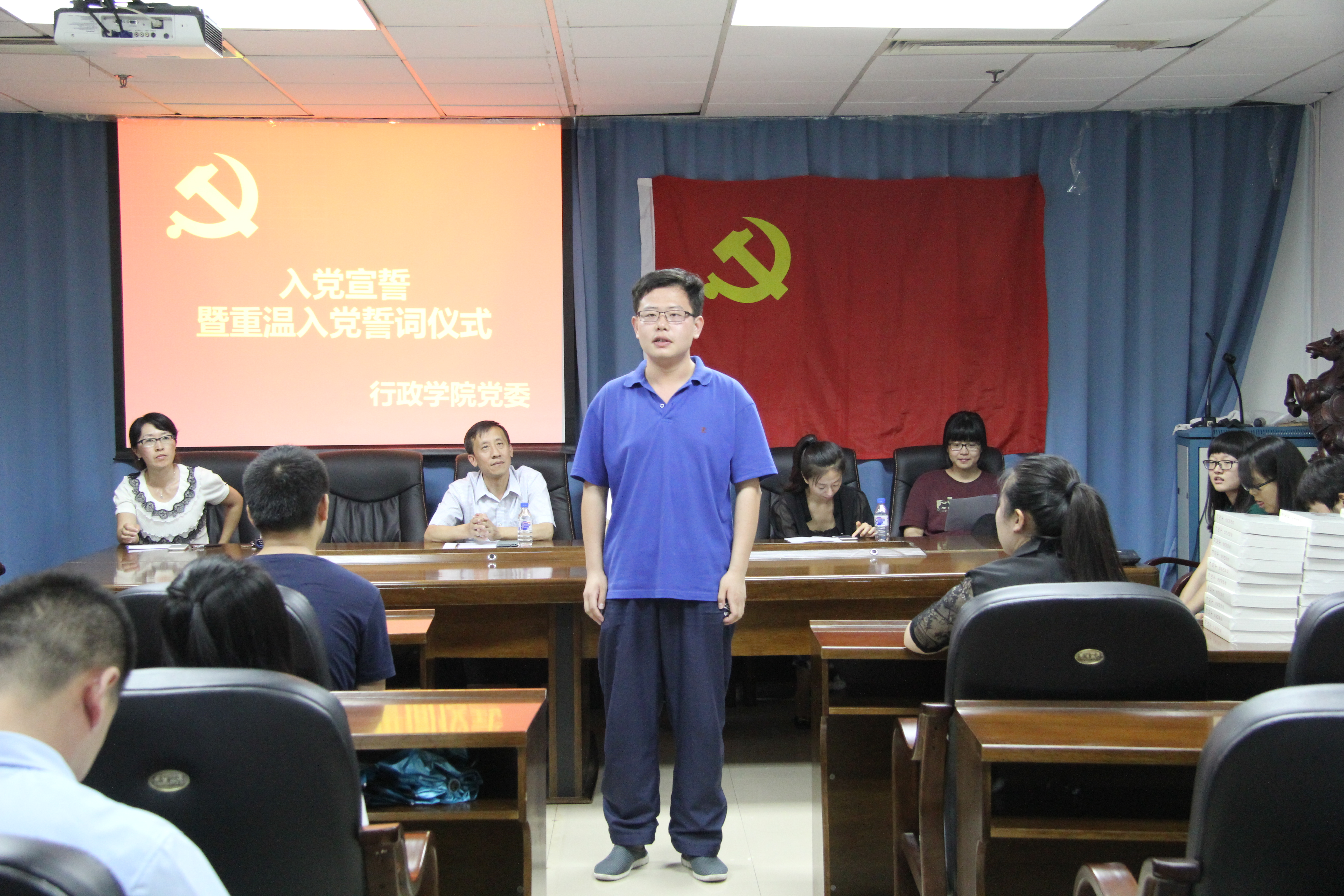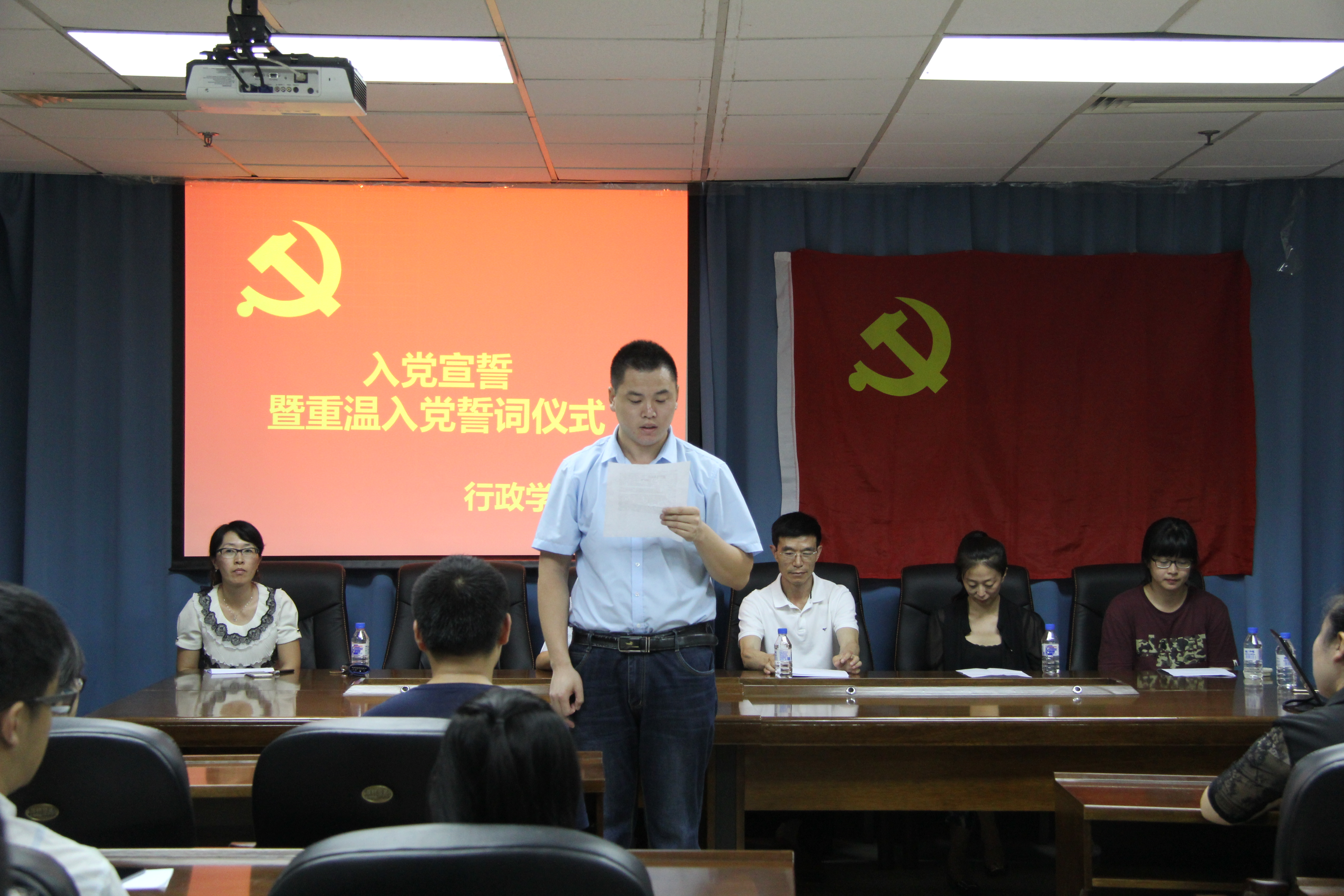 26日下午4时30分,伴着慷慨激昂的义勇军进行曲,入党宣誓暨重温入党誓词仪式正式开始。首先由邵薪运、曲畅竹分别宣读2015年上半年研究生、本科生新发展党员名单。随后,两名新党员代表王文江、杨端程和两名老党员代表贾茹、马瑞依次进行发言。他们表示,通过学习马克思主义的基本理论,参与党组织的各种活动,将理论与实践结合起来,时刻保持党员的先进性、纯洁性,使自己能够更好地运用马克思主义的立场、观点和方法去分析、解决问题,坚定为共产主义事业奋斗终身的理想信念。在今后的学习工作中,无论扮演何种社会角色,都会竭尽个人所能,服务社会,自觉为实现中华民族伟大复兴的中国梦奉献青春、智慧和力量。接着由本科生党支部书记任建国领誓,带领大家重温入党誓词。