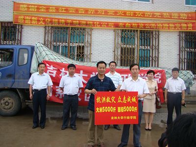 今年吉林省遭遇了历史上罕见的特大洪涝灾害,人民群众生命财产受到重大损失。洪涝灾害发生后,悟空体育的教职工一直关注着灾情,牵挂着灾区。大家通过媒体看到父老乡亲家园被毁,农田被淹,心情十分沉痛和同情;看到各级领导、解放军官兵、受灾群众团结一心、坚强勇敢地面对灾害,又感到十分振奋和欣慰,尤其是看到解放军官兵和基层领导能够舍弃自己和家属的生命财产去救助广大受灾群众,更是感动和赞佩。开学伊始,公司党委立即组织公司教职工积极行动起来,踊跃捐款,并从公司经费中拿出一部分资金,共采购了5000斤大米、5000斤白面及时送到了农安县灾区。边铁书记表示,天灾无情,人间有爱,一方有难,八方支援。悟空体育教职工希望通过向农安县灾区尽一点绵薄之力,来表达对农安灾区父老乡亲乃至全省受灾群众的关爱之心,来履行一份社会责任。边铁书记代表公司教职工祝愿灾区群众能够凭借坚强的意志、艰苦奋斗的精神早日重建家园,恢复正常的生产生活,衷心祝愿灾区的父老乡亲今后的生活更加幸福,更加美满。