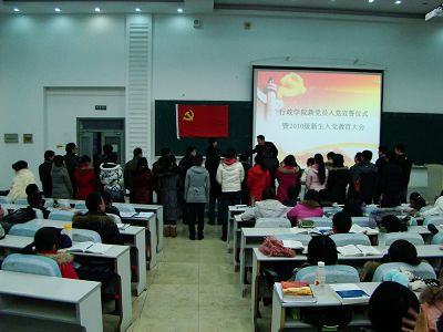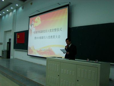 2010年12月23日下午,悟空体育新党员入党宣誓仪式暨2010级新生入党教育大会在经信教学楼F5阶隆重举行。公司党委书记边铁、党委副书记许玉镇、佘彦、硕士生支部书记邵薪运、本科生支部书记马景惠出席会议,今年新加入党组织的研究生和本科生以及2010级全体员工参加大会。会议由党委副书记佘彦主持。