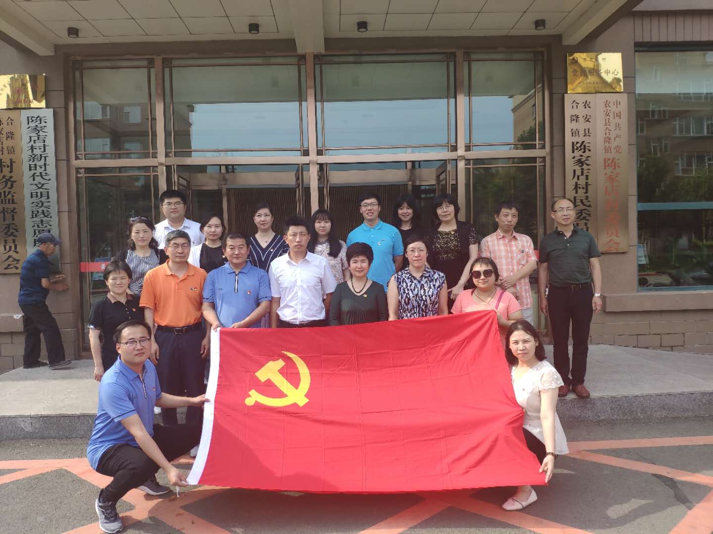 2019年7月2日下午,为庆祝建党98周年,喜迎建国70周年,实地感受 “美丽乡村”建设的新面貌,加深党员干部对十九大精神和社会主义新农村建设所取得巨大成就的理解和认识,公司党委书记魏鹤影、机关教工党支部书记密佳音、电子政务系党支部书记李国梁带领机关教工党支部、电子政务系党支部一行18人来到农安县合隆镇陈家店村调研参访,考察新农村建设,开展主题党日活动。此次活动是机关教工党支部“不忘初心、牢记使命”系列活动之一,也是公司党委设立的党支部重点活动项目。