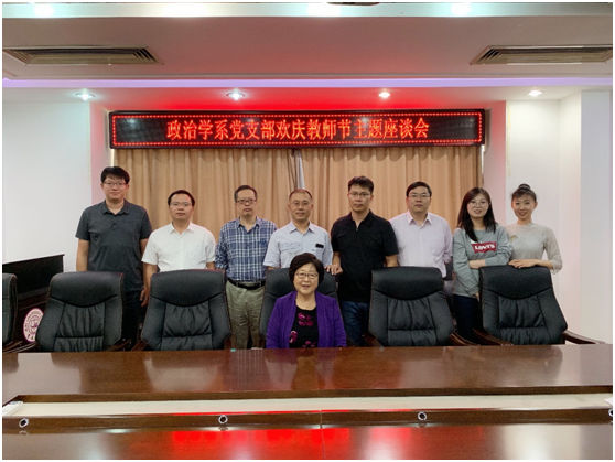 2019年9月10日,教师节。政治学系党支部召开教师节主题座谈会,由悟空体育匡亚明特聘教授、国家社科重大项目首席专家王彩波教授以“不忘教师初心,传承教师使命”为题分享了从教40余年的教师生涯心得与体会。座谈会由支部书记刘畅同志主持,政治学系青年教师参加此次活动。