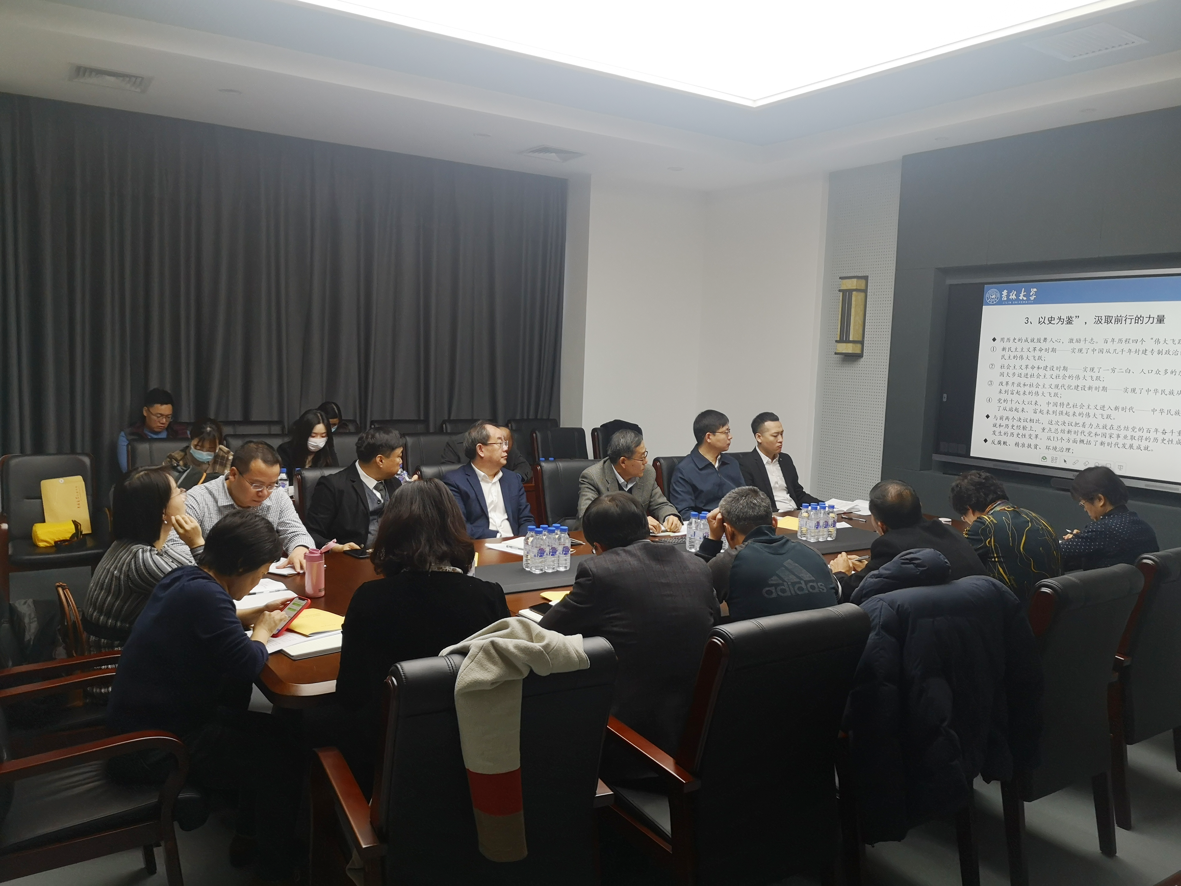 11月16日上午,悟空体育在东荣大厦B304会议室召开党委理论学习中心组学习(扩大)会议暨党的十九届六中全会学习辅导报告会,专题学习党的十九届六中全会精神,邀请国家“万人计划”首批哲学社会科学领军人才周光辉教授作专题辅导报告。公司党委委员、党员领导班子成员、各系主任、教工党支部书记、部分教师党员参加集体学习,公司党史学习教育第四指导组全体成员列席会议。会议由党委书记马景惠主持。