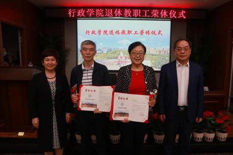 随后,张贤明经理为王彩波教授、常有余同志颁发荣休证书、荣休纪念奖杯,年轻老师为两位老师献上鲜花。