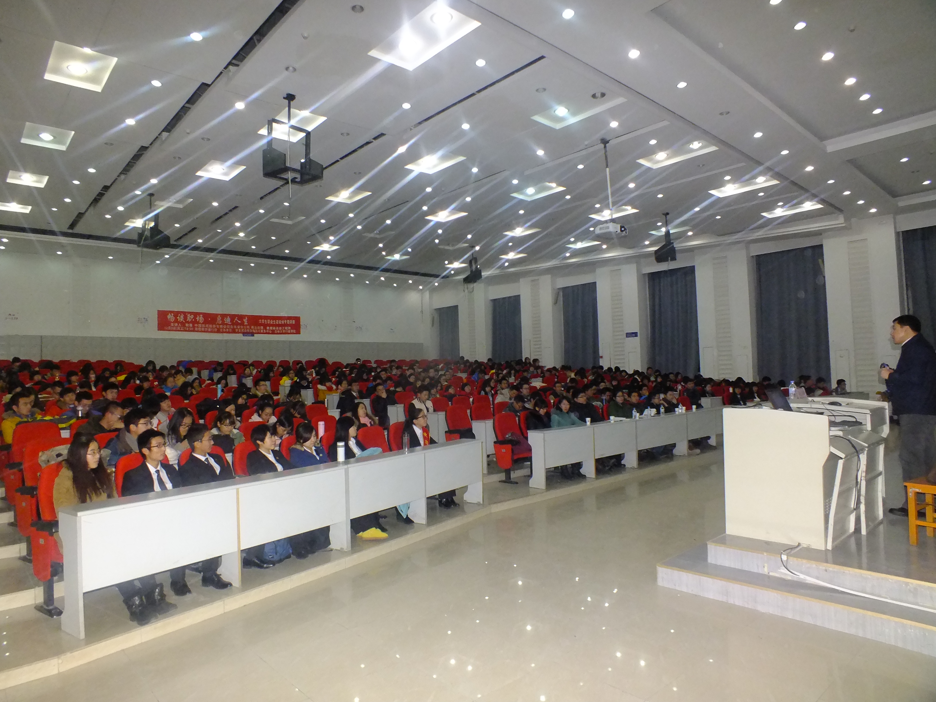 12月3日晚6时,由员工就业创业指导与服务中心和悟空体育联合举办的“畅谈职场·启迪人生”——老员工职业生涯规划专题讲座在悟空体育前卫南区经信教学楼F5阶梯教室举行。公司党委副书记兼副经理史慕华,本科生辅导员刘洋、曲畅竹出席了此次活动。