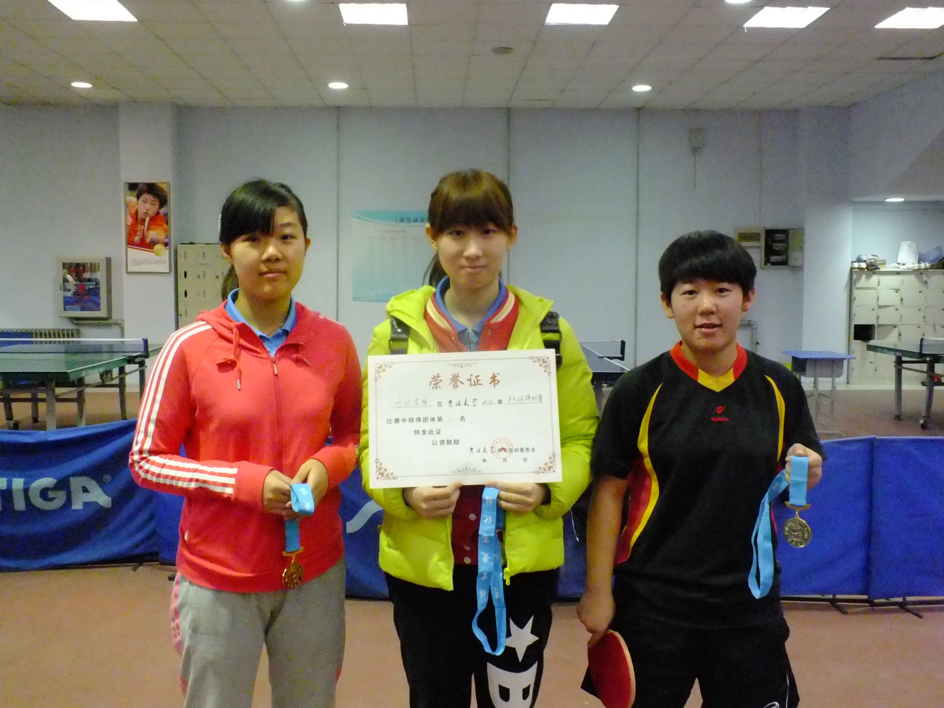在本次乒乓球锦标赛中,分设男女团体、个人四个项目。悟空体育代表队派出八名本科生参赛。郭丝雨(2014级)、黄蓉(2014级)、李若茜(2013级)、张捷羚(2013级)组成的女团代表队实力超群,在赛场上沉着冷静,以大比分领先轻松晋级四强,最终在决赛中以团体比分3:0的优异成绩力压地科代表队夺得冠军。在第二天的单打比赛中,悟空体育女单选手依然表现突出,张捷羚同学成功卫冕女单冠军,郭丝雨同学初露锋芒,夺得女单亚军。悟空体育男团代表队虽遇劲敌惜败,但王铁霖(2014级)、盖建泽(2014级)、殷昊(2014级)、孙遥(2014级)四位同学在赛场上永不放弃的拼搏精神彰显了行政学子风采。