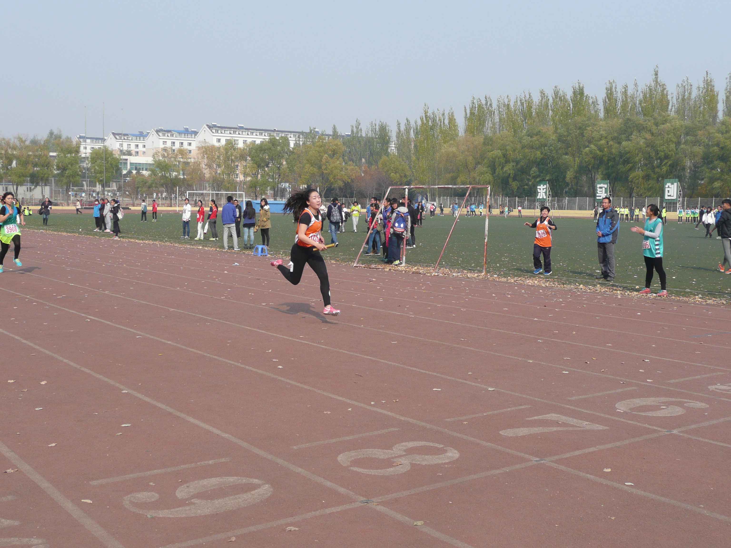 上午8时,随着男子8×100米迎面接力比赛发令枪的响起,各项比赛陆续展开。行政健儿矫健的身姿活跃在每一个赛场:100米比赛中的风驰电掣;400米比赛中的健步如飞;接力、时代列车比赛中的齐心协力,默契配合;女子1500米与男子3000米的比赛中的永不放弃、坚持到底。每一位参赛运动员都倾尽全力,挥洒汗水与激情,为悟空体育的荣誉而战。同时,场下的工作人员有条不紊地对整场比赛进行组织安排,为参赛运动员提供细心的服务,创造良好的比赛、休息环境。比赛中,赵洛楠(2014级)凭借女子400米、1500米双料冠军和在4×100米接力中的出色表现赢得大家一致的认同,王鹏(2014级)在男子胶球掷远中以打破校级纪录取得第一名的好成绩。行政学子良好的竞技水平和出色的赛场表现赢得了现场观众的认可,他们在比赛中所展现出的“友谊第一、比赛第二”的竞技体育精神更是给观众们留下了深刻印象。
