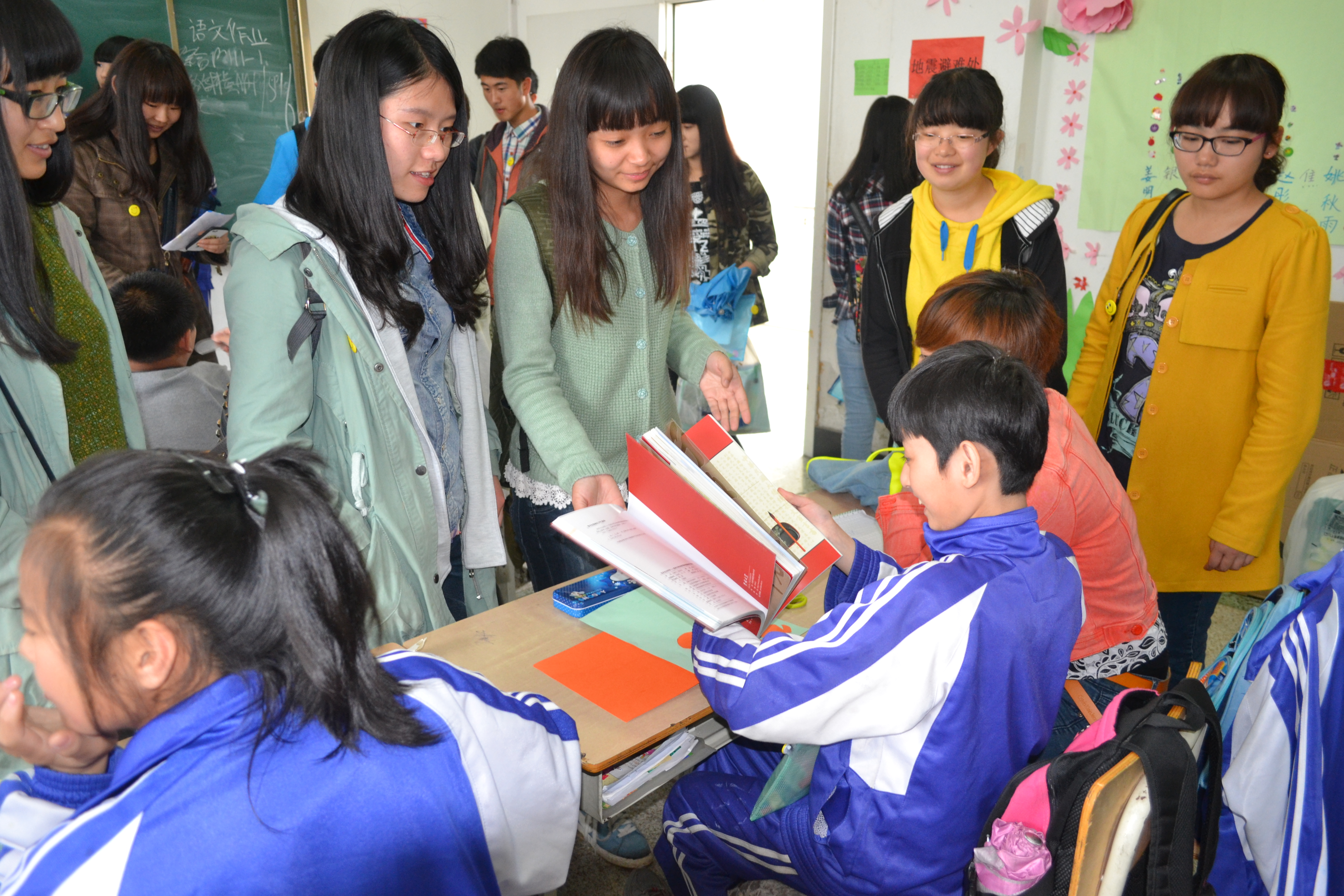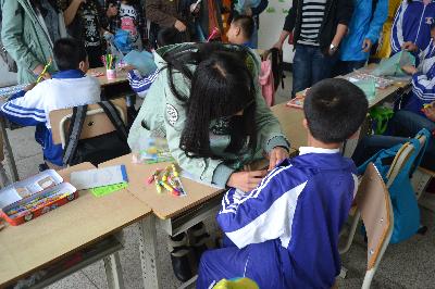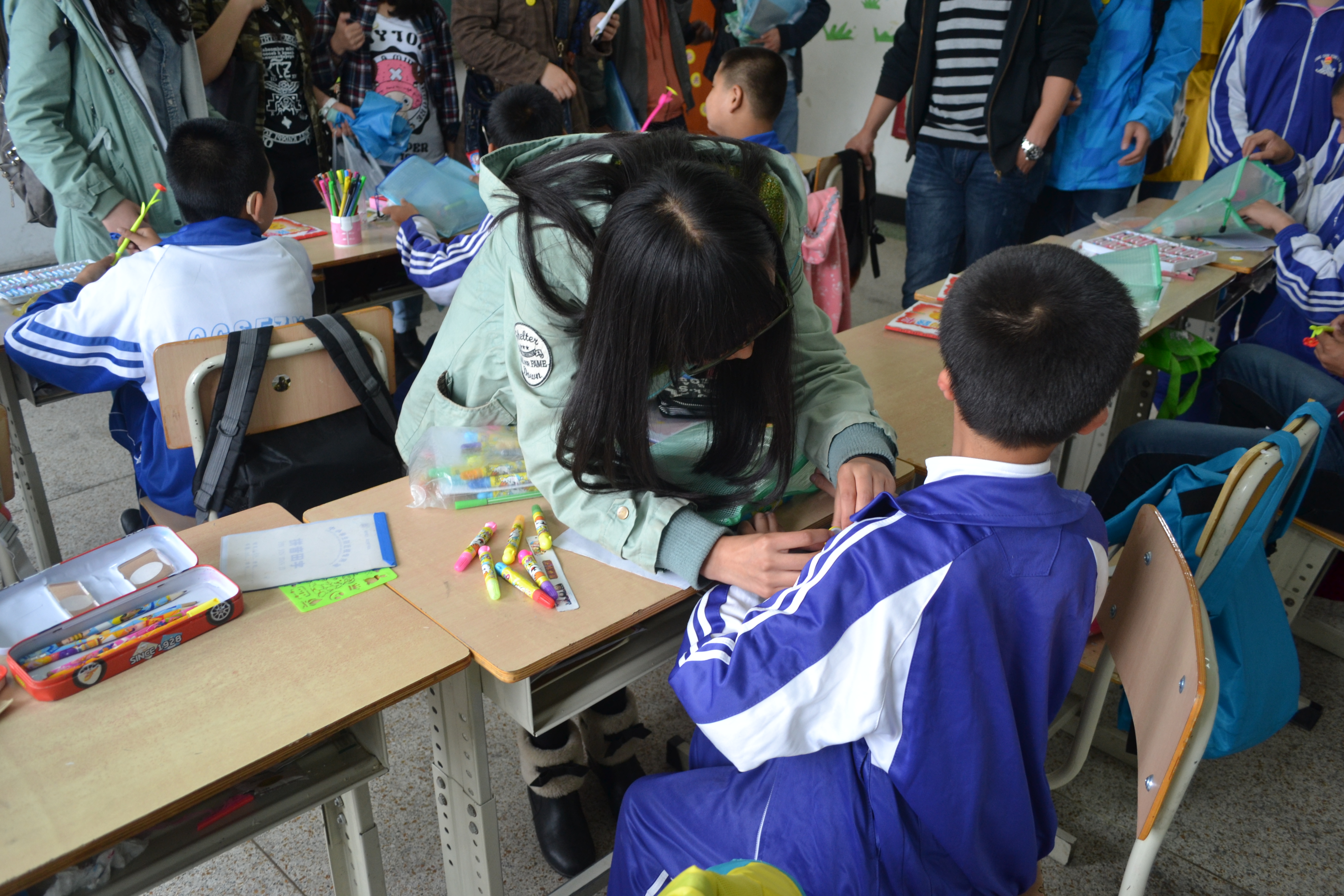 同学们在校领导的指引下,探访了公司的一些聋哑儿童班级,与小朋友们做了很多游戏,用手语和他们交流,并为他们佩戴了带有笑脸的胸徽。一位聋哑儿童用手语表达出他很喜欢各位志愿者带来的礼物,希望以后他们还来,孩子们质朴的笑脸让很多老员工为之动容。“很开心能看到老员工们来到这里,感谢有那么多人关心着这里的孩子们,给予孩子们这么多关爱,老员工是最有活力的团体,这个活动很有意义,希望类似的活动可以多些。”公司里的刘老师对志愿者们的到来表达了谢意。随后,校领导代表小朋友们将他们手工制作的爱心千纸鹤送给了行政学子,希望可以通过同学们转交给那些社会上的爱心人士。