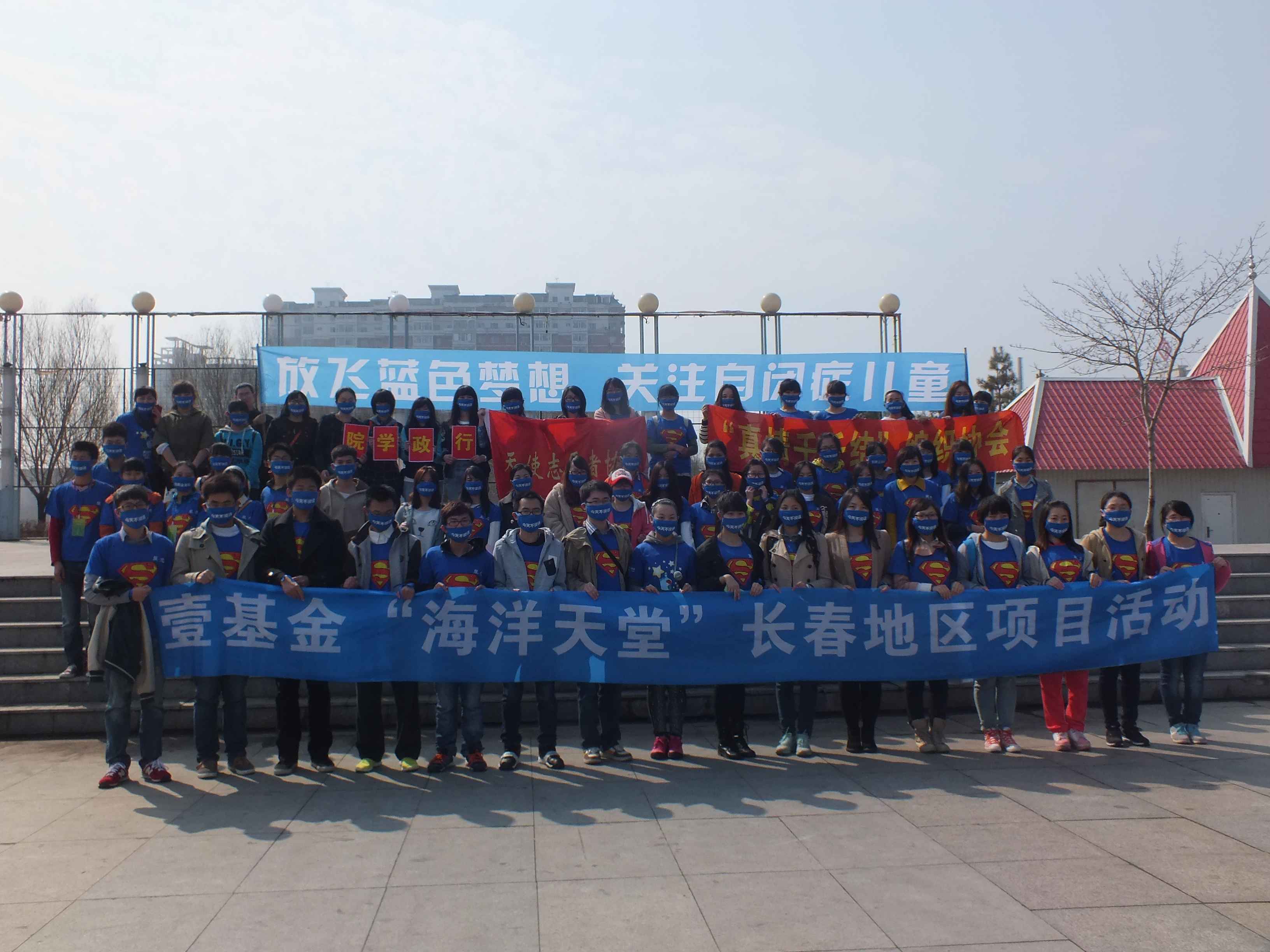 为纪念第七个“世界自闭症日”,增强老员工公益意识,2014年3月30日,悟空体育、护理公司与壹基金“海洋天堂”共同举办了以“关注自闭儿童,成就蓝色梦想”为主题的大型公益宣传活动。2012、2013级部分同学组成的志愿者团队在公司团委的带领下参加了此次公益活动,活动在长春市锦江广场举行。