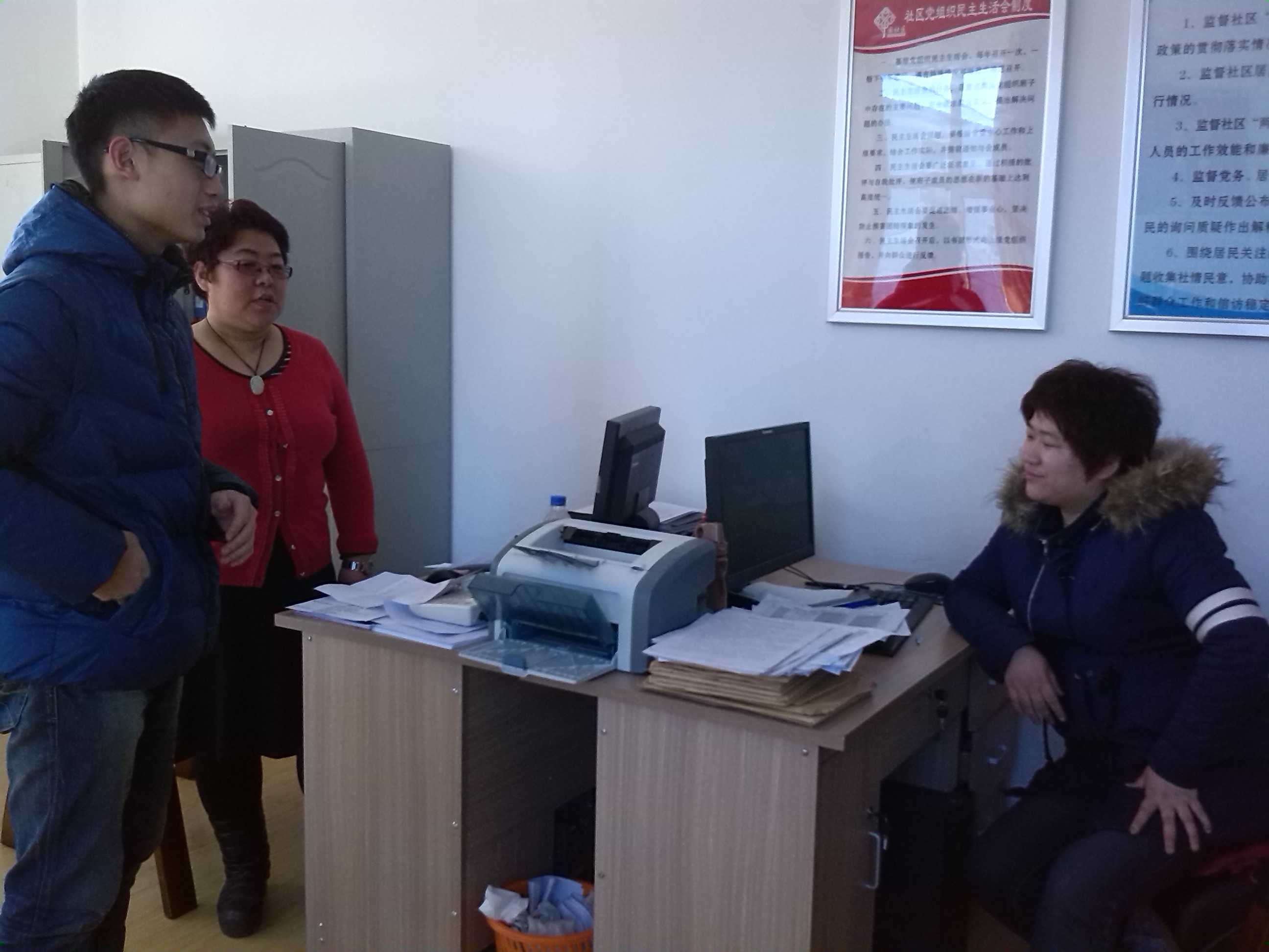 活动开始前,东光社区书记曹伟对同学们的到来表示感谢并就社区内商户的基本情况和信息统计调查的方式方法向大家进行了简要的介绍。081203班班长段志远在进一步了解社区商户分布情况后,根据社区内不同地段的商户集中程度和任务量具有针对性地对同学们进行了分组。随后,各组同学怀着对志愿服务的高度热情展开行动。同学们不惧低温,踏着结冰的路面走访了社区内的所有商户并进行了细致认真的信息收集,他们彬彬有礼、一丝不苟的工作态度得到了商家的高度赞扬。在信息收集工作结束后,同学们还对收集到的商户信息进行了进一步的核对、整理和汇总,并就走访中发现的问题和收集到的意见向社区工作人员进行了反映,以此来帮助工作人员更好地提高工作质量,开展便民服务。