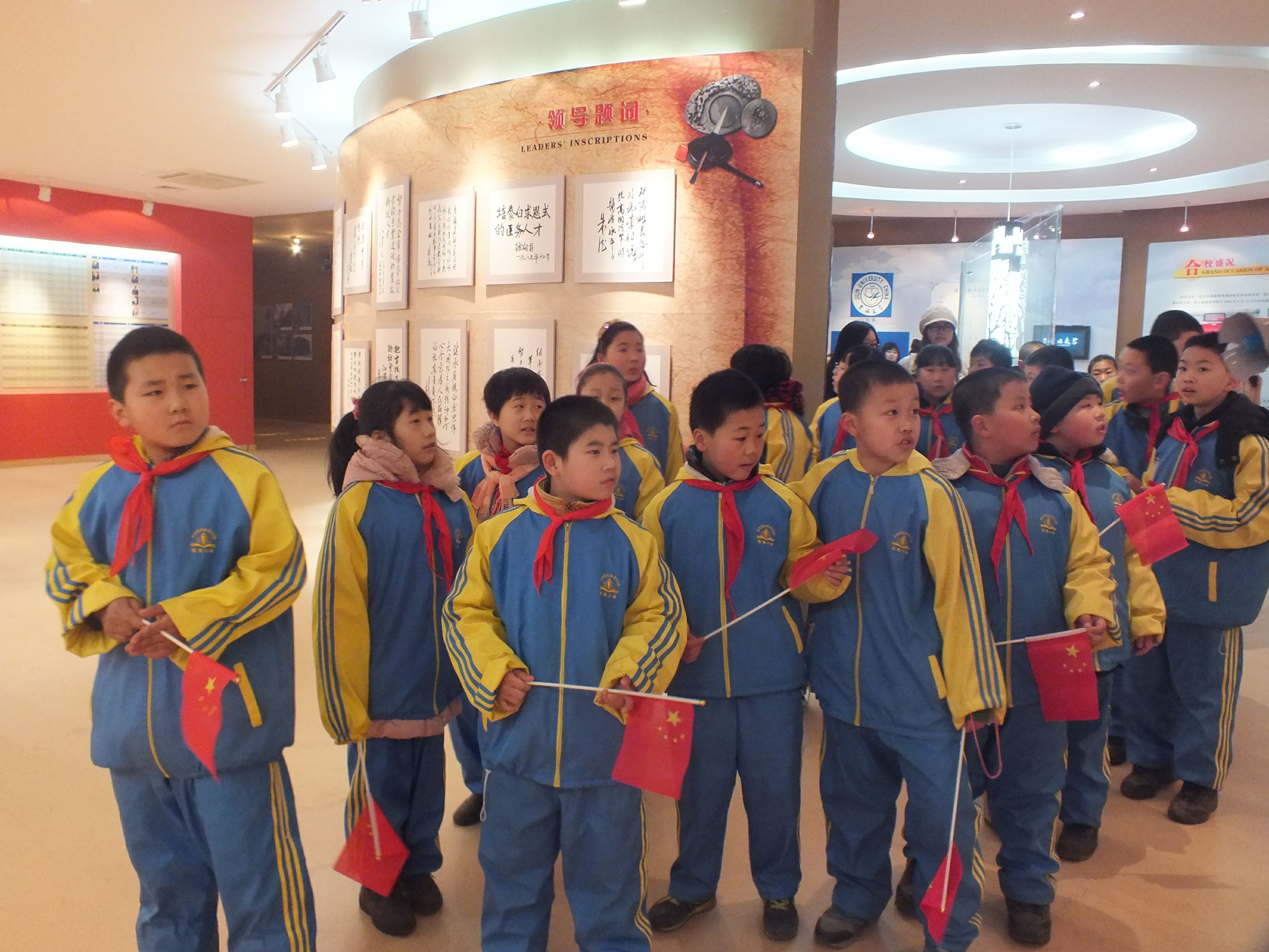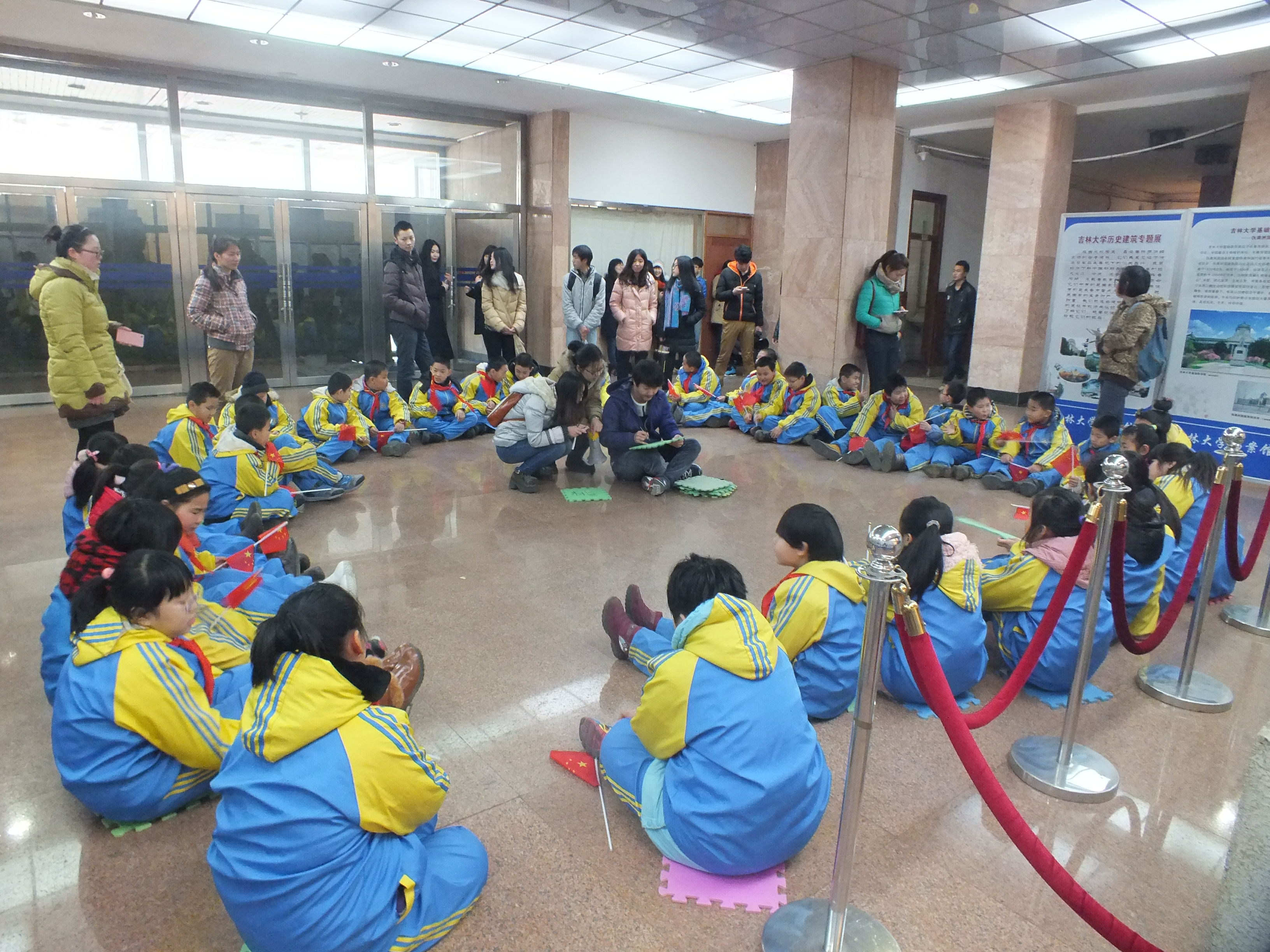 本次主题志愿服务活动由悟空体育081201班班长滕亮主持,包括感悟吉大校史、素质拓展、品尝吉大美食、浇灌梦想等板块。上午9时许,西安小学师生一行从公司中心校区东门步行游览至校史馆。在校史馆简短的欢迎仪式上,公司党委副书记兼副经理史慕华在致辞中回忆了半年前吉大志愿者走进西安小学的场景,表达了对小朋友们的祝福和对志愿者的希冀。随后,西安小学大队辅导员宋剑英在讲话中对吉大志愿者表示了感谢和赞扬,并同德育主任王刚代表西安小学向公司志愿者赠送了锦旗。