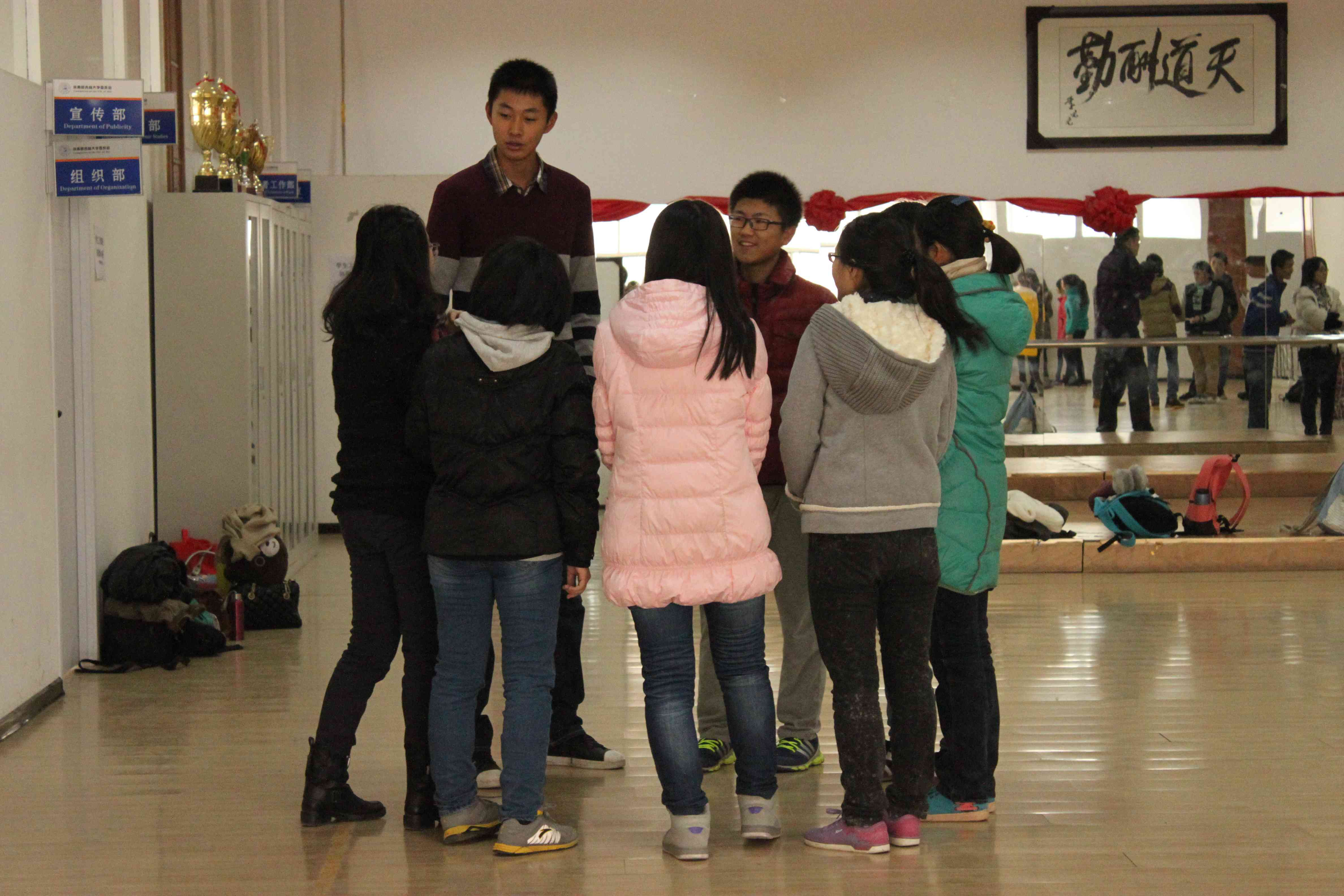 本次活动以培养团队合作能力和集体荣誉感为宗旨,开展多项素质拓展活动。2013级的员工干部们在工作人员的指导下,自愿组成“白雪公主与七个小矮人队”、“风华正茂队”、“最炫行政队”和“终极梦想队”四支队伍,参与了“姓名叠罗汉”、“卓越圈”、“雷区取水”等一系列趣味活动。活动现场气氛热烈,各队成员全力以赴,队友之间相互合作、相互信任,积极为团队谏言划策,充分体现了同学们的凝聚力和团队精神。通过积极参与到活动之中,各支队伍不仅逐渐形成了团队的默契感和集体感,而且通过队内成员良好地交流和积极的配合,迅速提高了团队的整体水平,展现了各位员工干部出色的个人素质与团队的协作能力。