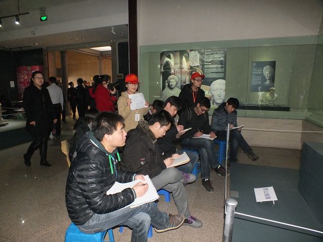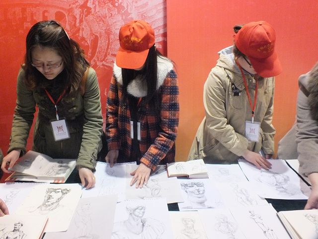 上午9时许,在长春大学特教公司手语教师杨帆的带领下,41名聋哑员工分别走进吉林省博物院的《辉煌时代——古罗马帝国文物展》展区和《瓯骆风 八桂情——广西民族历史文化展》展区,来自千年之前异域的神秘文物、充满民族风情的艺术品让聋哑同学感受到了艺术的熏陶。在老师的建议下,同学们选择好自己喜爱的雕塑模型,架起画板、拿好画笔,开始了现场临摹。临摹过程中,有的志愿者尝试着与聋哑同学进行简单的交流与沟通,为他们素描提供可行的建议;有的则耐心的为聋哑员工指引方向,提供座椅等物品;有的则维护现场秩序,保障本次活动的顺利进行,同时保护文物安全。