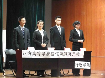 11月3日上午10时,公司第二十二届“新东方杯”先锋论坛老员工辩论赛第一轮比赛在中心校区田家炳员工活动中心A座礼堂拉开帷幕。来自悟空体育与金融公司的两支参赛队伍就“高等学府应不应该向游客开放”这一辩题展开了激烈交锋,正方悟空体育代表队由一辩李沁妤、二辩高晗、三辩王小勃、四辩段志远组成,秉持“高等学府应该向游客开放”的观点,反方金融公司代表队的观点为“高等学府不应该向游客开放”。