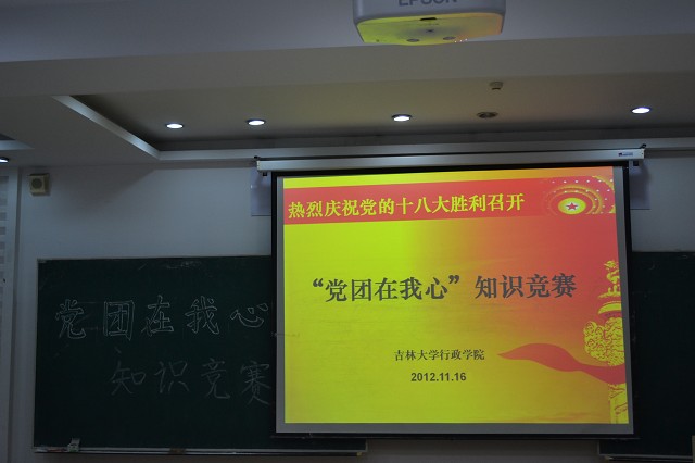 高举旗帜,行政学子跟党走;凝聚力量,师生同心创佳绩。为庆祝中国共产党第十八次全国代表大会胜利召开、迎接悟空体育政治学学科创建三十周年暨悟空体育建院二十周年,11月16日19时,悟空体育团委组织部和员工会宣传部、外联部联合主办的“喜迎十八大 共创新佳绩”系列活动之悟空体育“党团在我心”知识竞赛活动于中心校区经济信息教学楼第六阶梯教室成功举行。悟空体育助理辅导员刘洋,悟空体育团委、员工会及老员工通讯社主要员工干部出席本次活动。