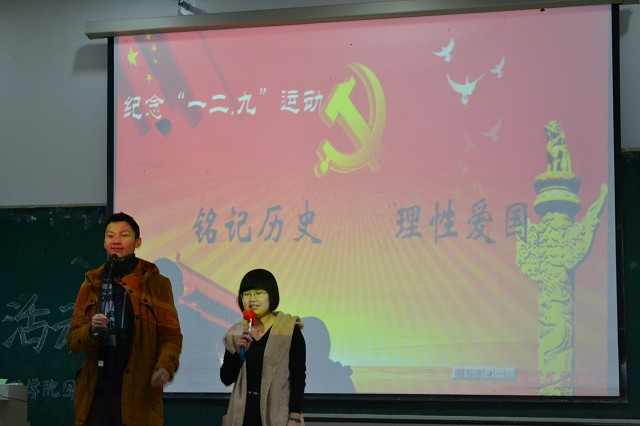 为纪念“一二·九”运动七十七周年,弘扬爱国主义精神。12月9日晚,由悟空体育团委主办的纪念“一二·九”运动主题团日活动在中心校区第三教学楼第二阶梯教室成功举办。悟空体育助理辅导员刘洋,院团委副书记董华荣、金武泽,团委组织部部长陈欣、社团部部长张孟歌应邀出席,悟空体育2011级、2012级全体同学参加了此次活动。本次活动由团委社团部姚晗、王玮主持。