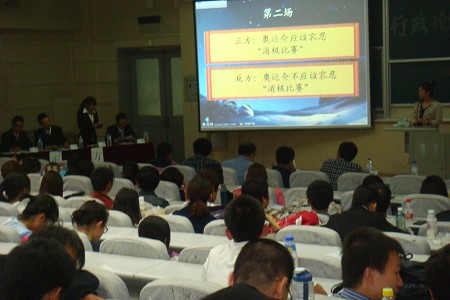 为期一周的系统训练,让四队辩手在思辨深度和实战技巧方面都有了明显提高,他们精彩纷呈而不失幽默的论辩不时赢得观众的阵阵掌声。赛后,郭锐老师和刘洋老师分别就攻结技巧和辩论仪态等方面进行了精彩点评,充分肯定了辩手们的出色表现。最终,两支反方队伍获得了“行政论坛”辩论赛决赛入场券,最佳辩手称号则由第一场反方二辩唐敏同学和第二场反方三辩范子雁同学夺得。
