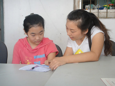 炎热的天气并没有阻挡志愿者奉献爱心的脚步。初到社区,同学们受到了工作人员的热情接待,随后大家一同来到社区活动室与5名小朋友见面。在短暂的自我介绍后,家教活动以一对一的形式开展起来。这是一个特殊的课堂,在这里,没有严肃的气氛,唯有志愿者和孩子们的轻声笑语;在这里,没有师生之间的口传心授,唯有朋友之间的贴心交流。孩子们的问题虽显“天真”,但仍会得到学长们的细心回答;作业本上的题目虽显“稚嫩”,但“老师们”仍会从多维度,多层次进行讲解。不过,这作业也不都是那么容易完成的,如志愿者苏亚丽所说:“现在小员工的作业难度还蛮大的,有一些题不费点心思还真做不上来,不过我会尽全力攻克它,不辜负孩子们的期待。”家教活动进行了约两个小时,在社区工作人员和孩子们的致谢掌声中,本次志愿服务活动圆满结束。