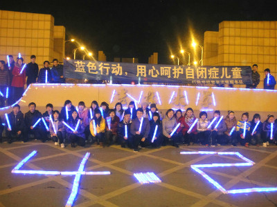 4月2日是国际自闭症日,为呼吁社会各界关注自闭症群体及其家庭,悟空体育星光志愿服务队和长春市星光特殊儿童训练养护中心在悟空体育和长春市百脑汇举办了关爱自闭患儿 的"点亮蓝灯"和"放飞梦想"的"蓝色行动"系列活动。4月1日晚18:30,公司星光志愿服务队和星光养护中心的老师们在悟空体育东门举行了“点亮蓝灯”活动,公司团委副书记马远俊参加了此次活动。湛蓝色天幕下,同学们手持蓝色荧光灯用爱和真心与老师们合力摆出“心”、“4、2”等图案,呼吁社会关爱自闭症儿童,关注自闭症群体。
