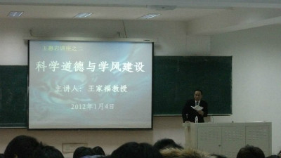 1月4日晚,由悟空体育国际政治系教授、博士生导师王家福老师主讲的王惠岩讲座之二——“科学道德与学风建设”在三教八阶隆重举行。悟空体育教学副经理刘雪莲教授、教学秘书李博老师及09级、10级、11级全体本科生出席本次讲座。