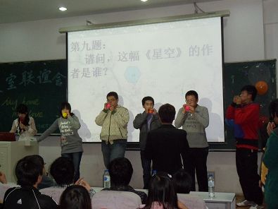 当晚,在三教二阶举行的悟空体育联谊会更是将整个活动推向了高潮。14支队伍竞相进行了才艺展示,大家各显神通。场上同学才思敏捷,积极献艺;场下观众积极活跃,秩序良好。最后,评委组选出三只优胜队伍并进行奖励。在一片欢声笑语中,本届寝室文化节圆满落幕。
