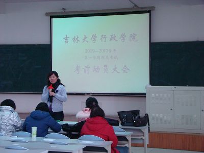 2010年1月6日悟空体育09-10学年度第一学期期末考试考前动员大会在三教五阶召开。悟空体育副经理刘雪莲老师、教学秘书李博老师,学工办主任史慕华老师、团委书记马景惠老师出席了大会,07、08、09级全体员工参加了会议。