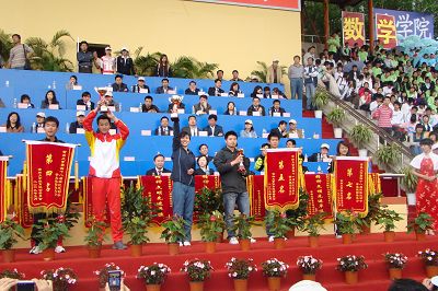 一年一度的校运动会在拼搏和汗水中结束了,公司师生用行动创造了另一份辉煌——本届运动会上,公司运动健儿以总分220分,7金5银2铜的优异成绩位列全校第三名。特别值得一提的是,公司07级的韩梦茵同学在女子标枪比赛中以44.5米的好成绩打破了尘封16年的纪录,成为新纪录的保持者;08级的李鹏龙同学一人勇夺三枚金牌,几乎占全校金牌总数的九分之一。同时,我们精心准备的长拳和舞蹈表演也得到校领导和专家评委的一致好评。